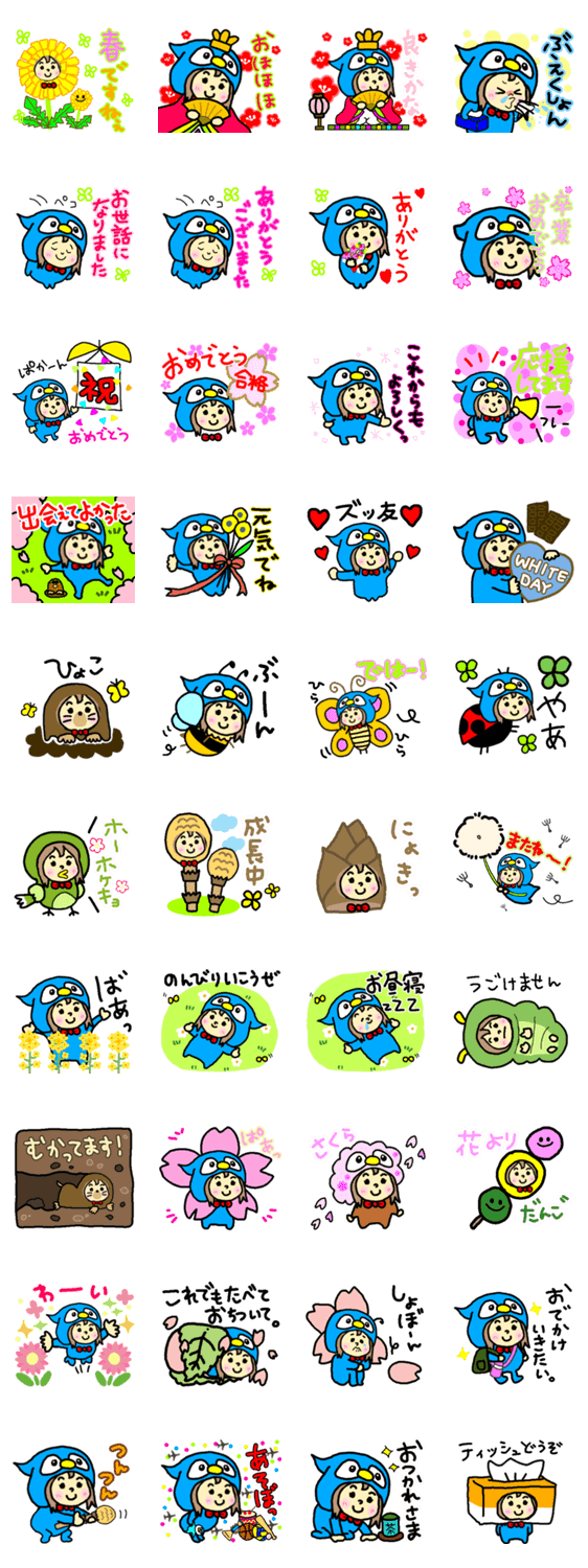 | スタンプ説明 | ゆるゆる魔法使いのさわこちゃん 3月 ペンギンのフードをかぶった魔法使いのさわこちゃんの3月のスタンプです!春★ゆるゆるイラストバージョン 販売情報 |