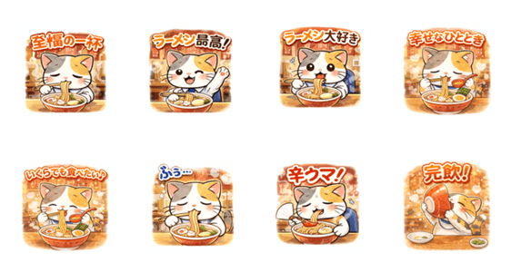 今日もズルズル♪ ラーメンを愛する猫のほっこりスタンプセット