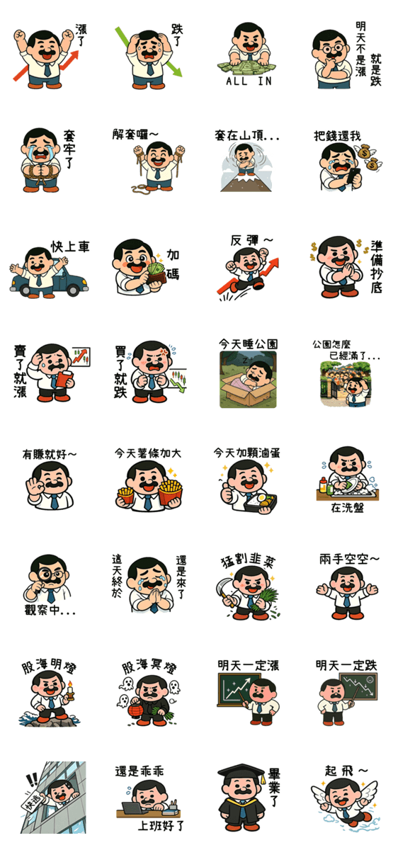 | スタンプ説明 | Buy high. Sell low. Every. Single. Time. Still a proud stock market leek. Professional bag holder since day one. |