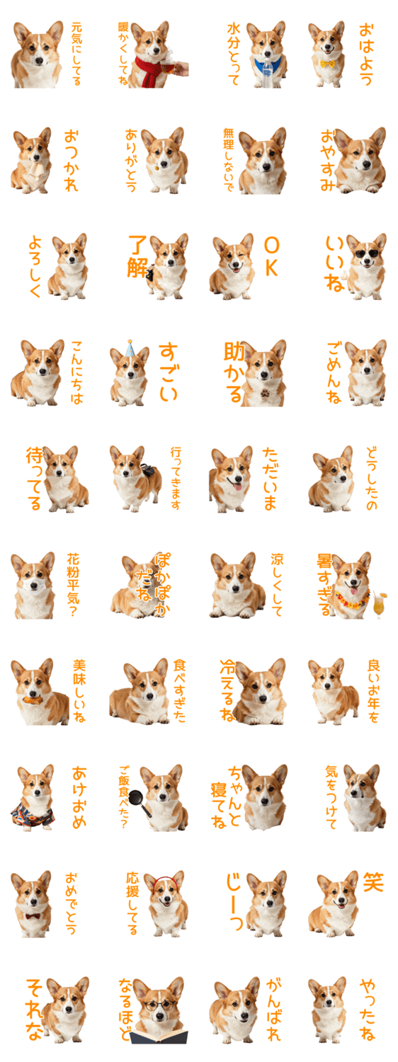| スタンプ説明 | 頼まれてないのに心配してくるお節介コーギー。花粉や天候、挨拶など一年中使える言葉で過剰にケア。友達や家族へのネタや気遣いに。 |