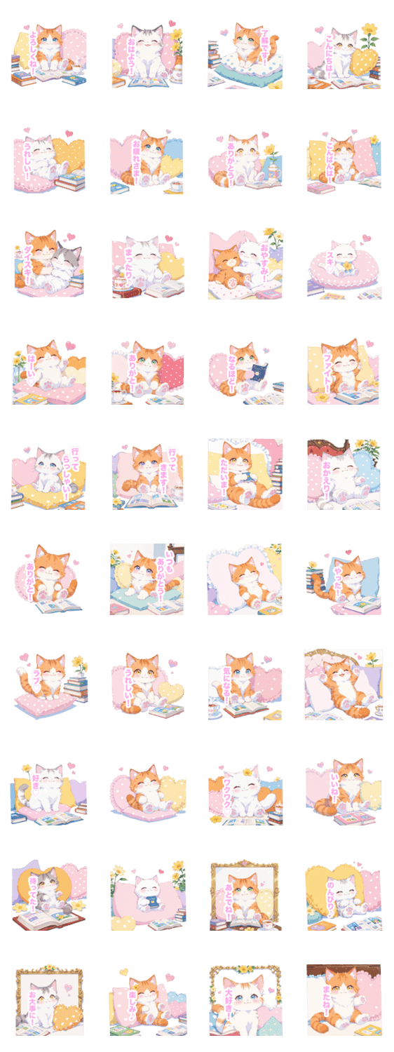 | スタンプ説明 | 可愛い/癒し/日常/挨拶/毎日使える/猫/ネコ/子猫/パステル/ハート/もふもふ/ふわふわ/クッション/ナチュラル/スコティッシュフォールド/生活/キュート/フラワー/暮らし |