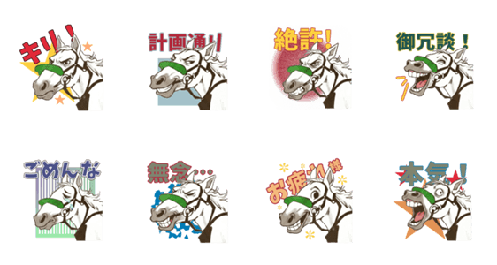 | スタンプ説明 | A dramatic white horse with powerful expressions! This sticker set makes your talk more exciting and funny. |