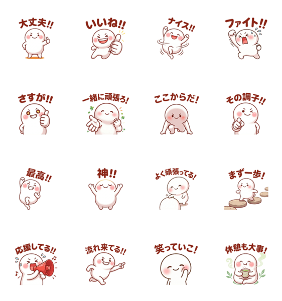 | スタンプ説明 | 落ち込んだ日も、頑張った日もこれ1つでOK。 安心・肯定・爆上げまで揃った“毎日使える”応援スタンプ16個セット。 仕事・恋愛・友達トークに即使える万能ポジティブ集! |