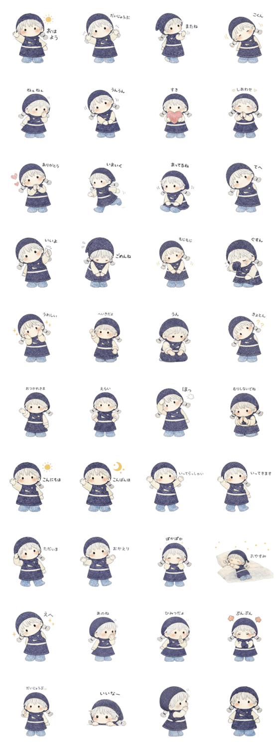 | スタンプ説明 | やさしい色合いの手描き風女の子スタンプです。 毎日使えるあいさつやリアクションを集めました。 ぽやっとした気持ちを届けたいときに。 |