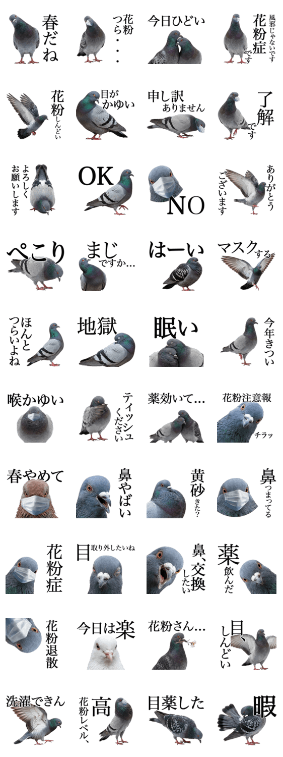 | スタンプ説明 | くしゃみ 鼻水 目のかゆみ 春 スギ花粉 アレルギー マスク ティッシュ つらい 季節ネタ 共感系 かわいい リアル 写真風 LINEスタンプ 日常 トーク 使いやすい |