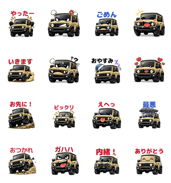 | スタンプ説明 | ころんとした軽SUVの表情がとにかく癒し♪使いやすいセリフと感情豊かなポーズで、家族・友達・恋人との会話がやさしく盛り上がります |