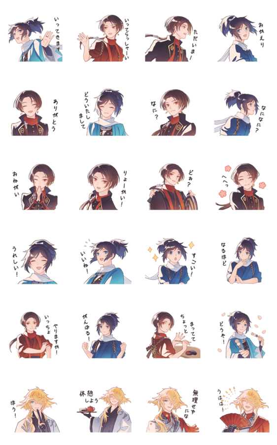| スタンプ説明 | 加州清光と大和守安定メイン、ちょっとだけ一文字則宗が登場するスタンプです ※LINE Creators Collaboration『刀剣乱舞ONLINE』参加スタンプです。 |