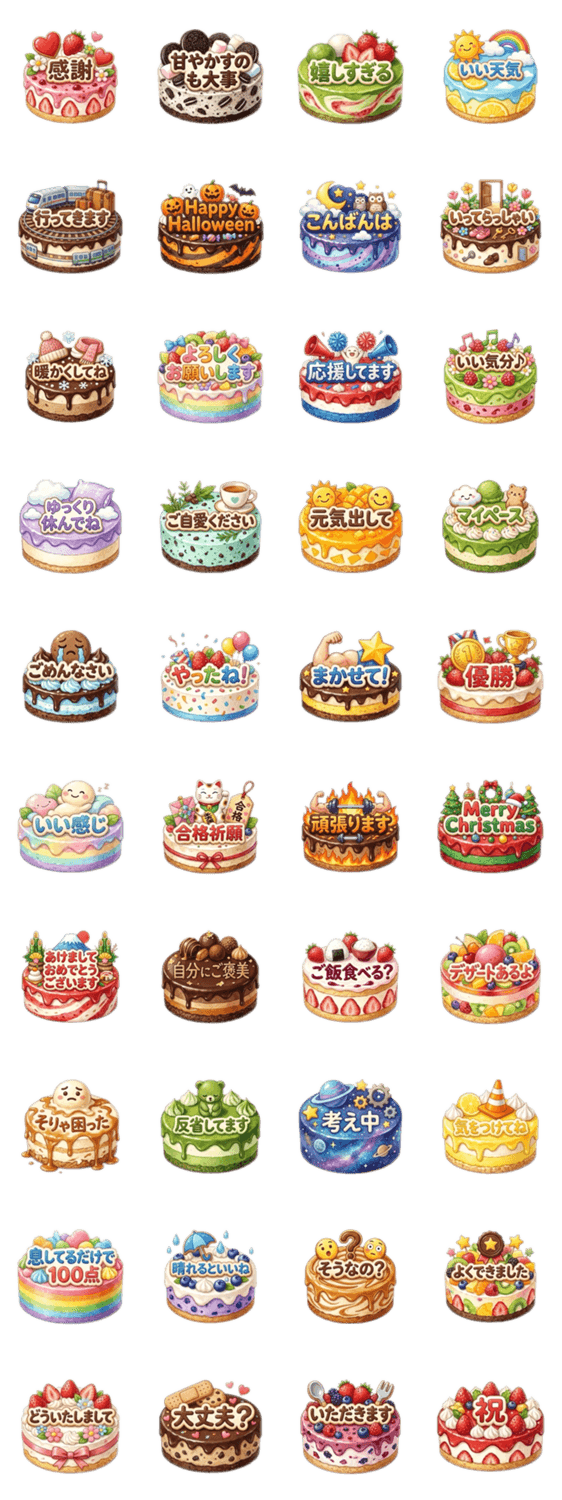 いろいろなデザインのアイスケーキで思いを伝えるスタンプです♪