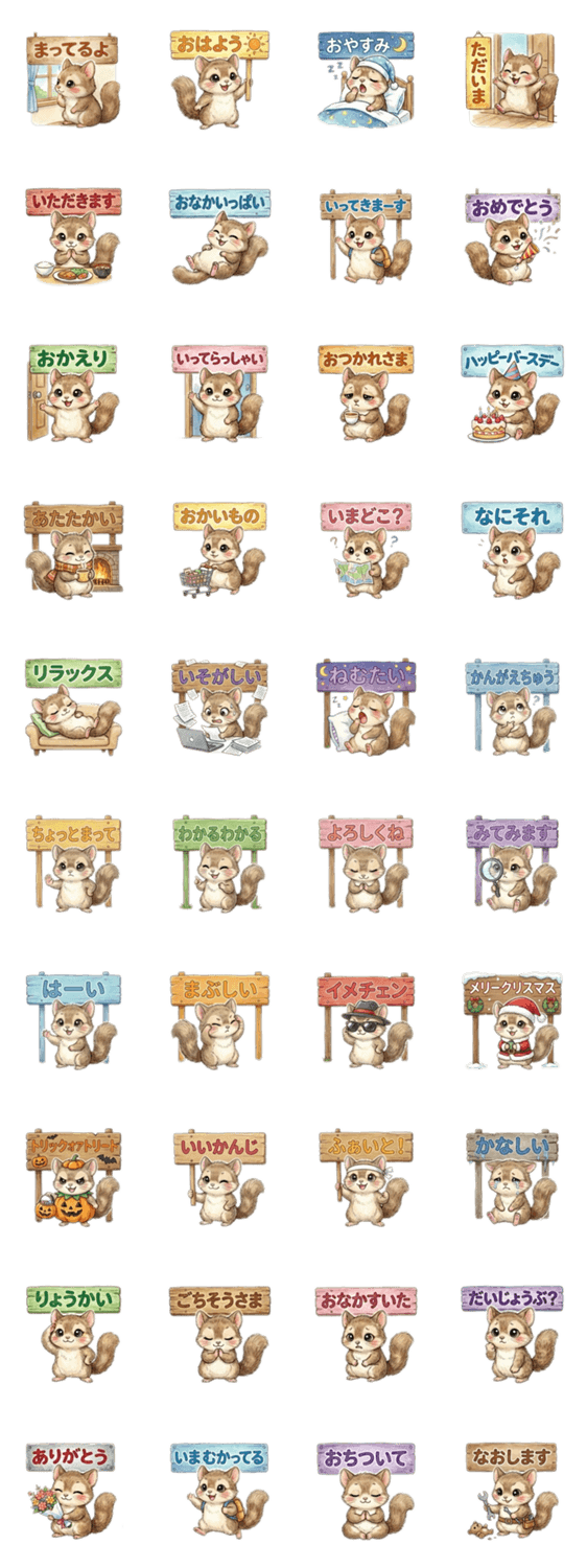 気持ちを看板で表してるかわいいリスのスタンプです☺︎