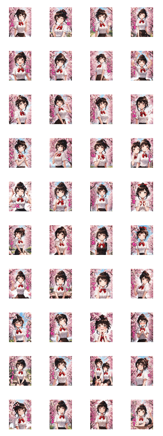 桜が似合うやさしい春ガールのスタンプ ふんわり笑顔とあたたかい表情で、あいさつや日常トークを春色に彩る使いやすいセットです✨