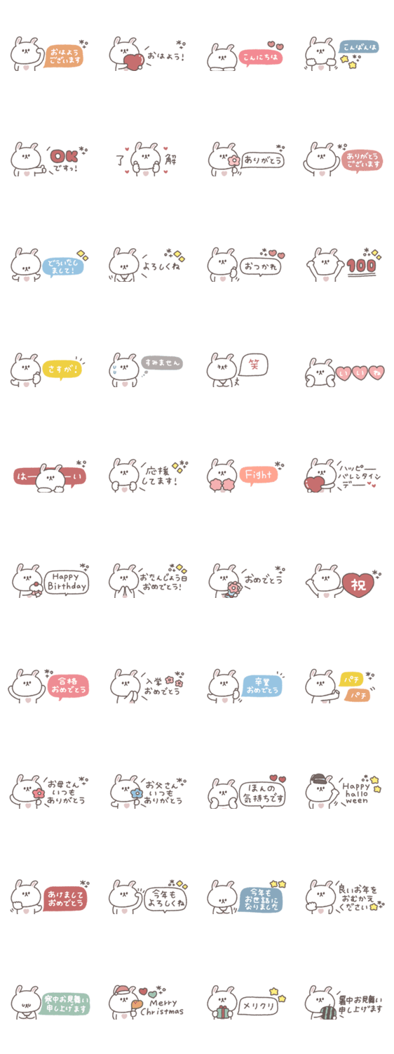 一つあると便利なかわいいうさぎのスタンプです。 うさぎ/大人可愛い/シンプル/あいさつ/吹き出し/くすみカラー /省スペース