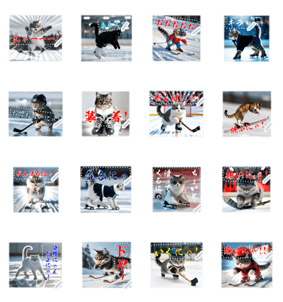 | スタンプ説明 | 文字入力できる! にゃんこも運動しちゃうにゃ!ウィンタースポーツのアイスホッケー/フィギュアスケート/スキージャンプなどを熱く楽しむ猫ネコメッセージスタンプ⭐ 現在この商品は一部のスマートフォン版LINE 10.3.0以上のトークルームでのみ使用できます。動作環境の最新情報はヘルプをご確認ください。 |