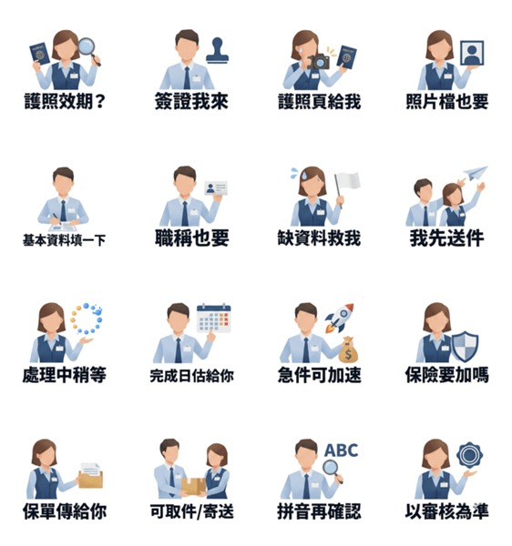 | スタンプ説明 | Simplify document processing. Guide clients on passport validity, visa photos, and forms. Efficient tools for selling travel insurance. |