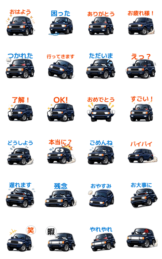 | スタンプ説明 | かわいくて元気なSUVキャラが、会話を明るく彩ります。使いやすい言葉と表情で、家族・友達・恋人とのやりとりにぴったり! |