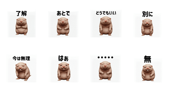 無感情で、どストレート。使いやすさ重視のハダカデバネズミシリーズのスタンプです!