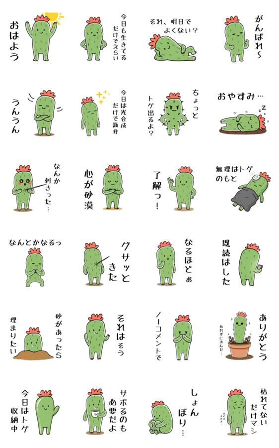 サボりたくてしかたがないサボテンのシュールなスタンプ