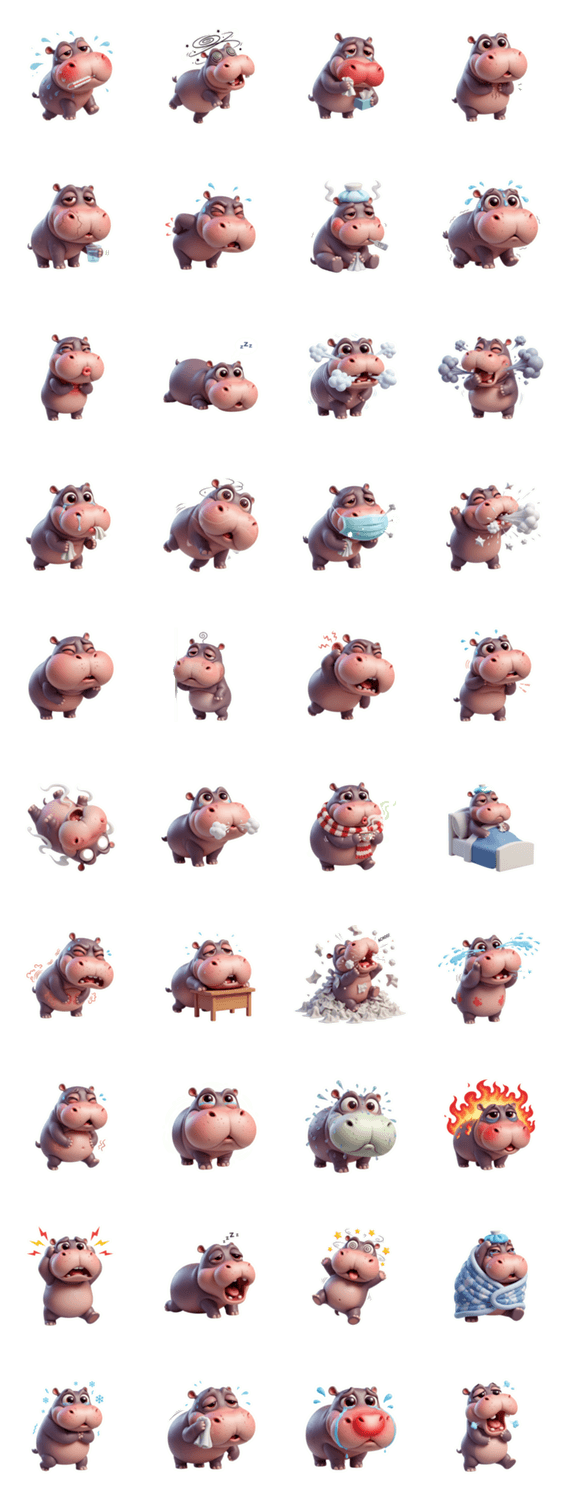 | スタンプ説明 | もう限界!この大きなお尻のカバさんは、完全に電池切れで「寝そべり」モードに突入しました。仕事や学業で疲れ果てた時、もう何もしたくない気分を、このカバさんのスタン |