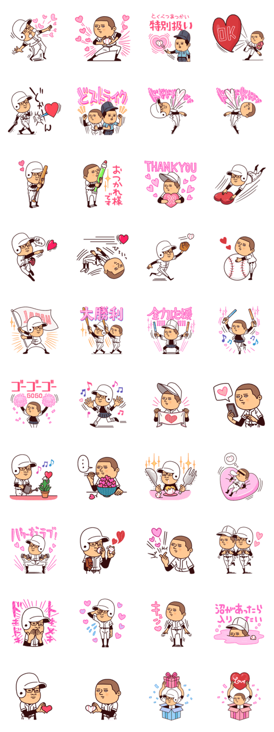 | スタンプ説明 | シュールでかわいい高校球児がハートで気持ちを伝える。チームの応援やニコイチ組み合わせスタンプも。家族/恋人/感謝/全力応援/推し活/バレンタインデー/ホワイトデー |