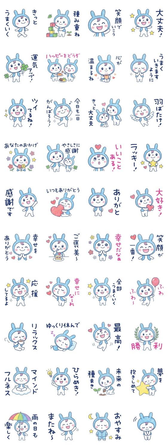 使うたびに心が明るくなる開運スタンプ。前向きな言葉が、あなたと相手にハッピーを届けます。毎日のトークに、うさボレロと一緒にキラキラした福を呼び込もう!