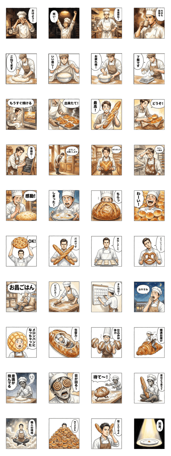 パン職人の早朝3時4コマスタンプ -LINEスタンプマニア