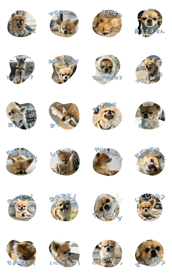 上質でハイセンスな大人のチワワスタンプ。フォーンのロングコートチワワによる、媚びないけれど愛らしい表情豊かな24枚の「ヤンチャ」な日常。第一弾。Produced by KYO