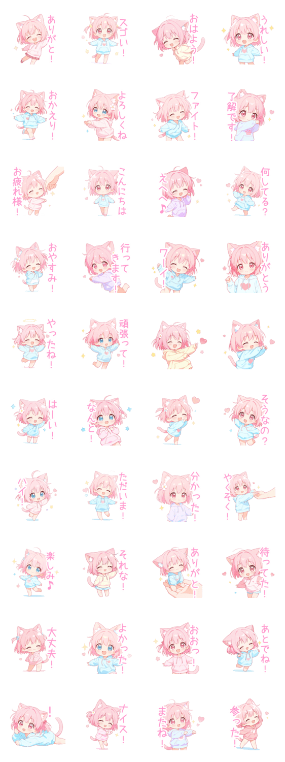 ねこ/猫/猫耳/フーディー/可愛い/量産型/ピンク/日常/水色/パーカー/パステル/女の子/女子/ガーリー/ミニキャラ/キュート/ファンシー/毎日使える/挨拶/ちびキャラ/癒し