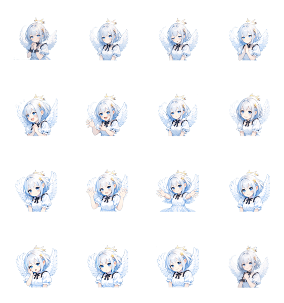 やさしい表情の天使ちゃんがふんわり動く癒しスタンプ。日常で使いやすいリアクションがたくさん。可愛い天使が会話をやさしく彩ります。