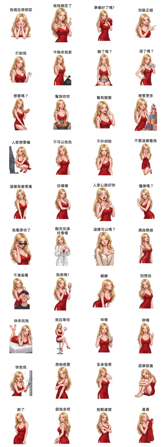 | スタンプ説明 | 恍惚な表情で目を閉じる彼女。実は激辛鍋が熱すぎるだけ。 ※このスタンプはトークルームで大きく表示されるBIGスタンプです。 |