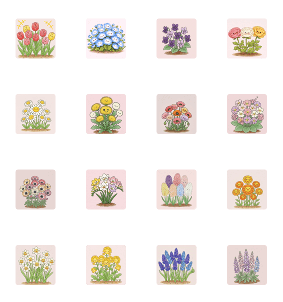 | スタンプ説明 | 春の草花で気持ちが伝わる無言スタンプ。表情つきの花たちが、やさしく想いを届けます。 |