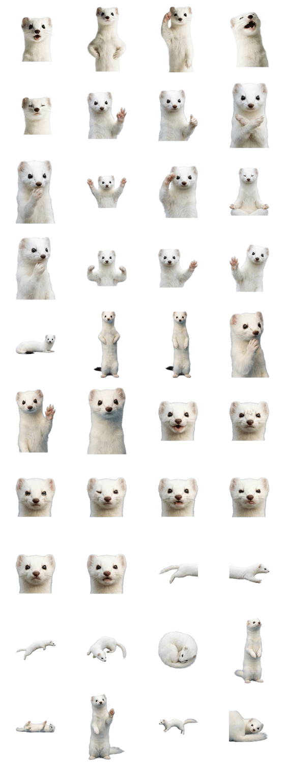 写真風 リアル 動物 野生動物 小動物 白い毛 かわいい 冬毛 クール 癒し系 ナチュラル 自然 山岳 高山 表情豊か 使いやすい 日常 トーク LINE 人気 ※このスタンプはトークルームで大きく表示されるBIGスタンプです。