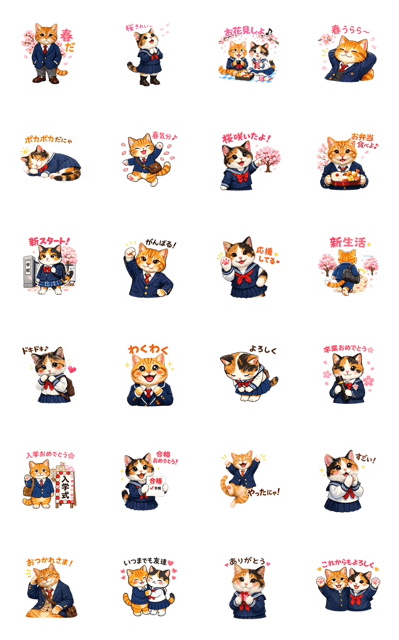 入学式、卒業式、出会いと別れの季節にぴったりのスタンプ 春 ・花見 ・チューリップ ・桜 ・いちご ・入学 ・卒業