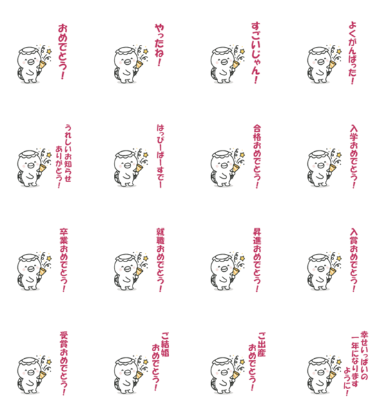合格・入学・就職・結婚・出産まで、いろんなお祝いをクラッカーで伝えるかっぱぁくんスタンプです。