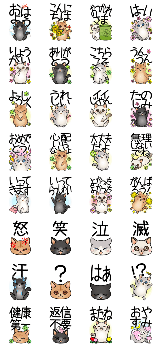老眼の方や小さい字が苦手な方に読みやすくて大きい文字のはぴきゃとスタンプ登場!シニア世代に嬉しい毎日使えるワードを揃えました!(#猫の日を盛り上げよう!2026) ※このスタンプはトークルームで大きく表示されるBIGスタンプです。