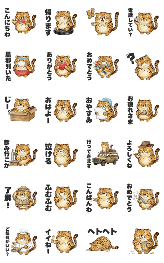日常で使いやすいフレーズを、チーターの「ちたお」がゆるくかわいく伝えます。