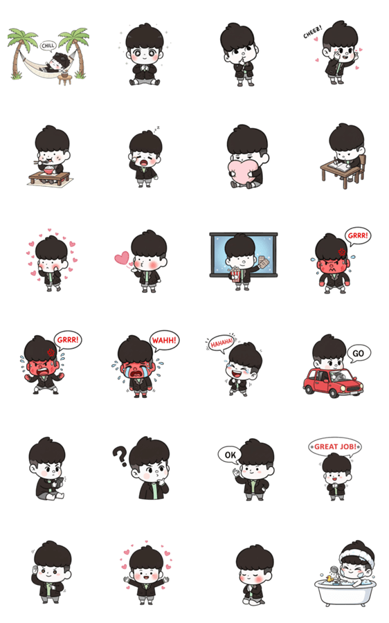 | スタンプ説明 | "A flashy young guy oozing with confidence." |