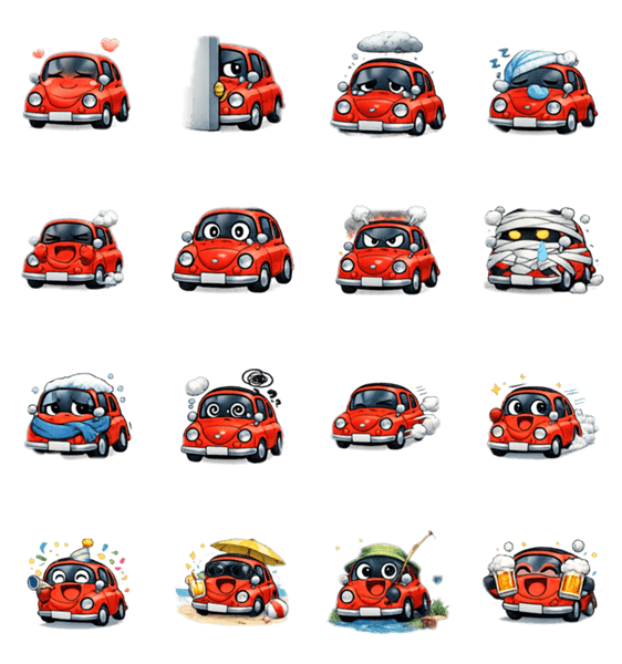 見ているだけで癒される、まるっこい赤の車スタンプ。感情表現も豊かで、トークが楽しくなる♪シンプルで使いやすい万能スタンプです