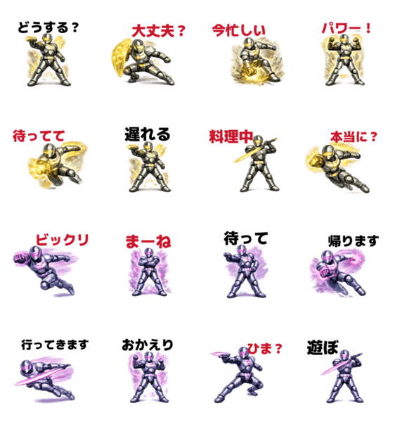 シンプルでかっこいい正義のヒーローがトークを盛り上げる!感情表現が豊かで、使いやすさ抜群。子どもから大人まで楽しめる万能スタンプです