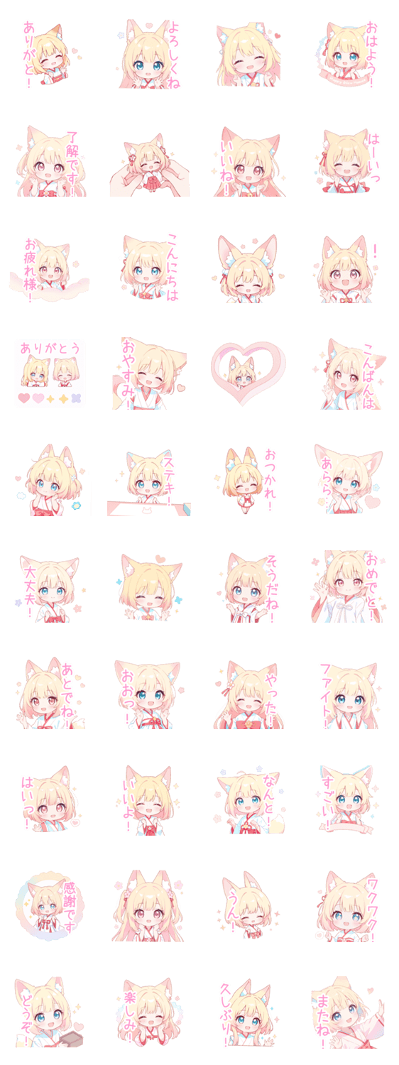 金髪/ブロンド/狐/狐耳/ゆるかわ/かわいい/可愛い/挨拶/日常/パステルカラー/会話/女の子/女子/癒し/ゆるい/ふわふわ/甘い/ちびキャラ/ミニキャラ/デフォルメ/花/ハート