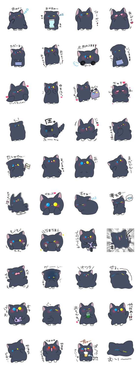 友達や恋人、親子で使えるにゃおんスタンプ第1弾です!にゃおんは猫のおばけです。漢字で書くと「猫怨」。愛でると良いおばけに変わるかも?みんなで愛でましょう!