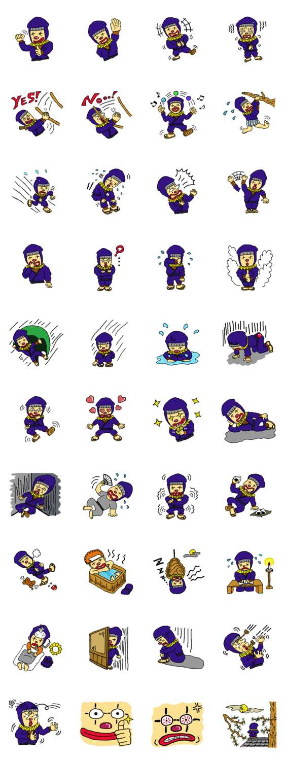 | スタンプ説明 | 本職であるピエロのピエール君が忍者に憧れて修行する日常の姿、会話をモチーフにしました。 |