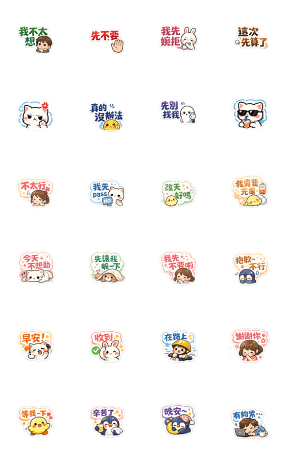 白ネコのあいうえお・・・ってるスタンプ