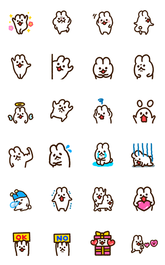 日常で使いやすいスタンプ!お餅みたいにぽてっと可愛いウサギがちょこちょこ動く♪シュールでゆる可愛いスタンプです✌︎('ω')★