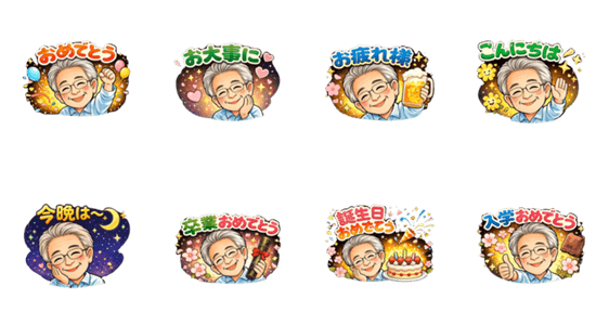 ジィジの笑顔のイラストを用いた挨拶スタンプです。