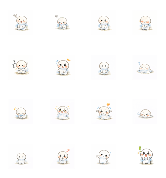 水彩タッチの、やさしいいきもののスタンプです。 驚いたり、迷ったり、ちょっと元気がなかったり。 言葉にしにくい気持ちを、そっと伝えたいときに使えます。