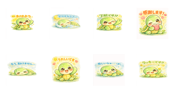 These soothing stamps of the laid-back and kind Kametaro are easy to use every day.