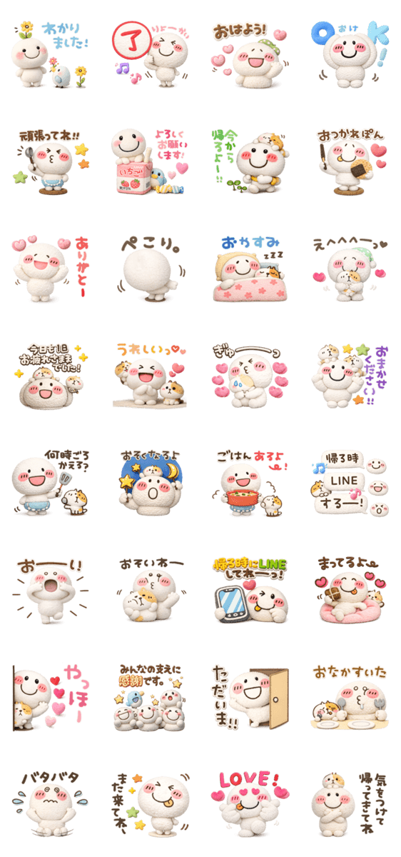 まるぴのスタンプもこもこフワフワ人形風のスタンプです。お母さんがよく使うワードがいっぱい!家族連絡用