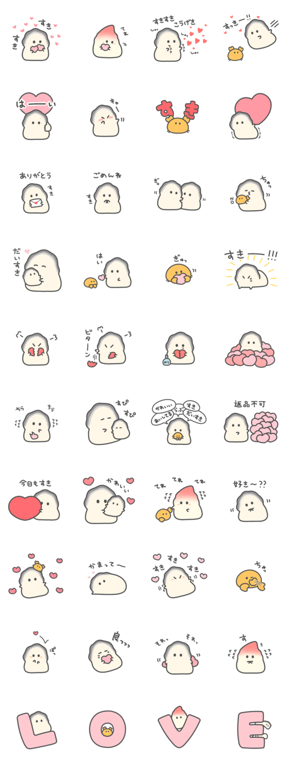 ぷりぷりカキのすきがいっぱいのスタンプです 牡蠣 ホッキ貝 ピンノ 好き ハート