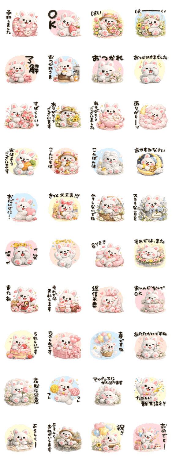 らぶりーうさぎ♡お花♡ピンク多め -LINEスタンプマニア