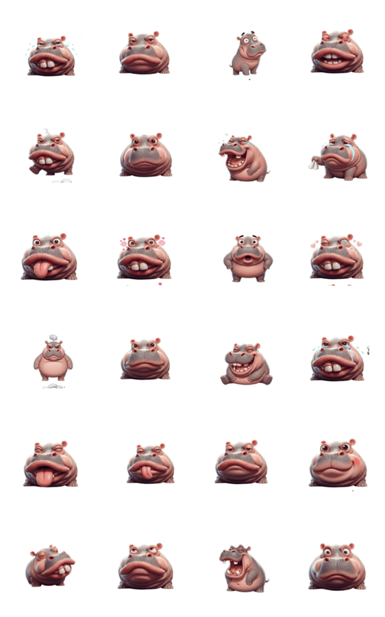 ぷっくり唇のカバさんがびっくり!その驚いた表情がたまらなく可愛いですね。このスタンプでトークにサプライズと楽しさをプラスして、毎日をハッピーに彩りましょう!