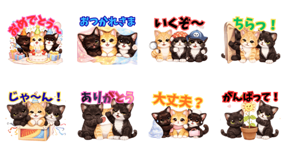 ゆるふわ3にゃんが毎日を彩る神かわリアクション♪ 使いやすい表情がそろい、あいさつ・返事・気持ち伝えまでこれ一つでOK。癒しと使いやすさを両立した万能スタンプです。